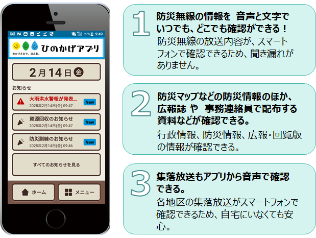 令和7年4月1日より防災無線放送がスマートフォンで確認できるアプリケーション「ひのかげアプリ」の提供を開始しました。