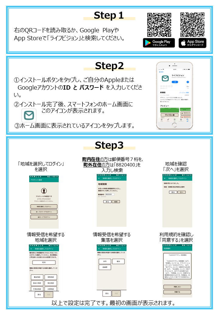 次の方法で、「ひのかげアプリ」をインストールしてください。